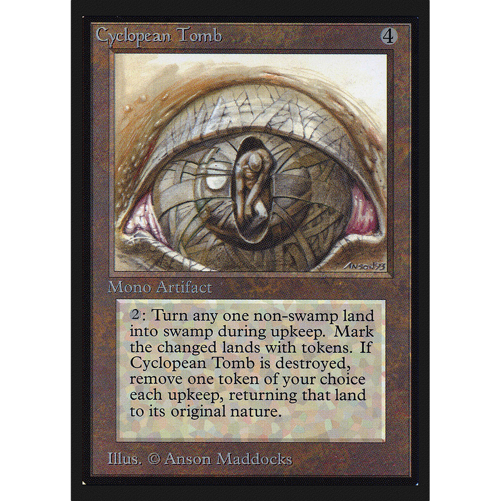 When Cyclopean Tomb is put into a graveyard from the battlefield, at the beginning of each of your upkeeps for the rest of the game, remove all mire counters from a land that a mire counter was put onto with Cyclopean Tomb but that a mire counter has not been removed from with Cyclopean Tomb.