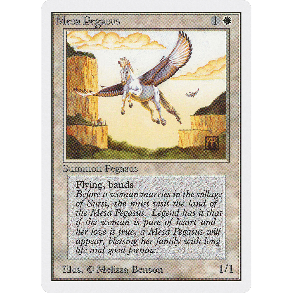 Flying; banding (Any creatures with banding, and up to one without, can attack in a band. Bands are blocked as a group. If any creatures with banding you control are blocking or being blocked by a creature, you divide that creature's combat damage, not its controller, among any of the creatures it's being blocked by or is blocking.)