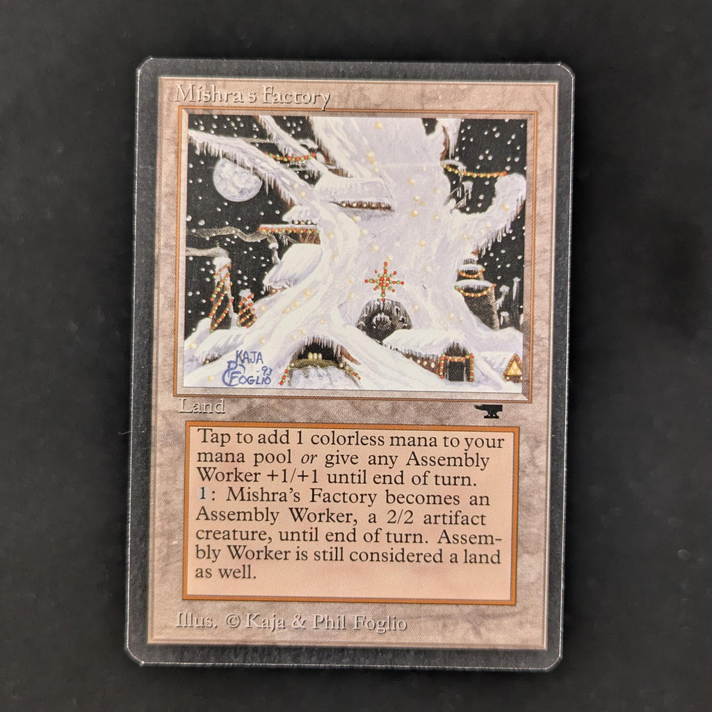 {T}: Add {C}.\n{1}: Mishra's Factory becomes a 2/2 Assembly-Worker artifact creature until end of turn. It's still a land.\n{T}: Target Assembly-Worker creature gets +1/+1 until end of turn.