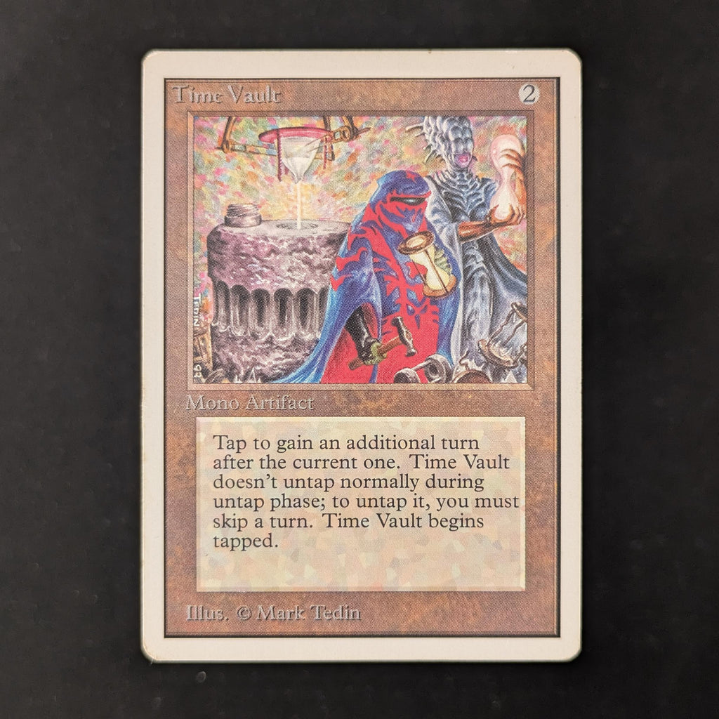 If you would begin your turn while Time Vault is tapped, you may skip that turn instead. If you do, untap Time Vault.: Take an extra turn after this one.