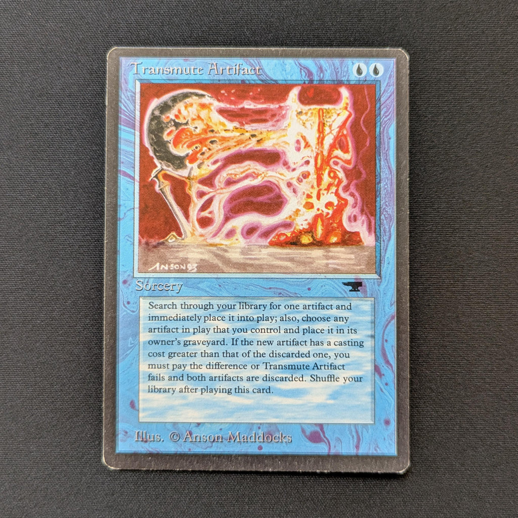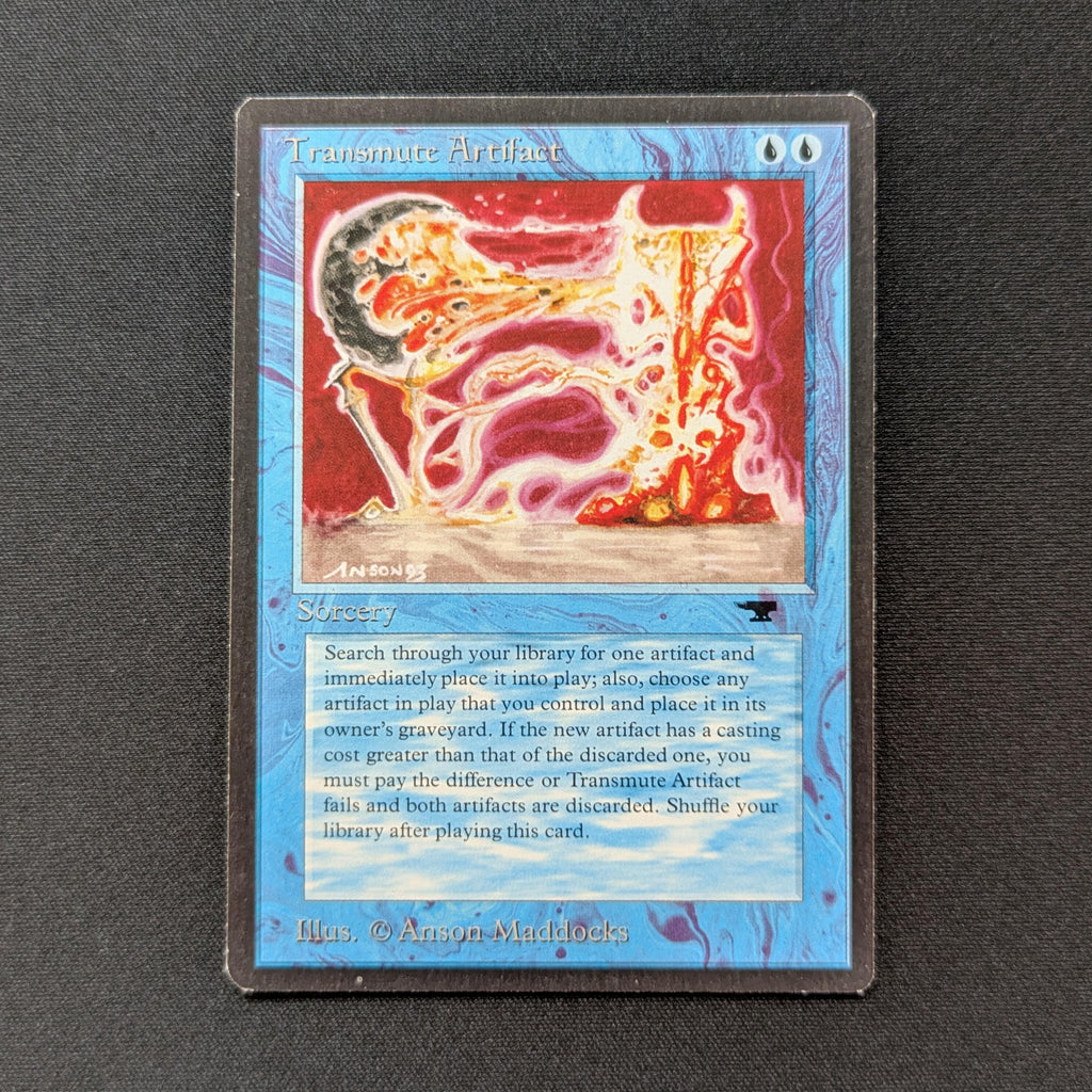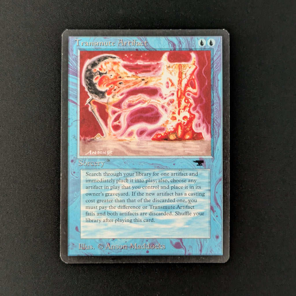 Sacrifice an artifact. If you do, search your library for an artifact card. If that card's mana value is less than or equal to the sacrificed artifact's mana value, put it onto the battlefield. If it's greater, you may pay , where X is the difference. If you do, put it onto the battlefield. If you don't, put it into its owner's graveyard. Then shuffle.