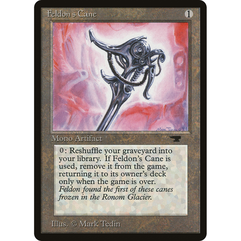 {T}, Exile Feldon's Cane: Shuffle your graveyard into your library.