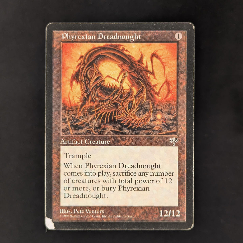 When Phyrexian Dreadnought enters the battlefield, sacrifice it unless you sacrifice any number of creatures with total power 12 or greater.