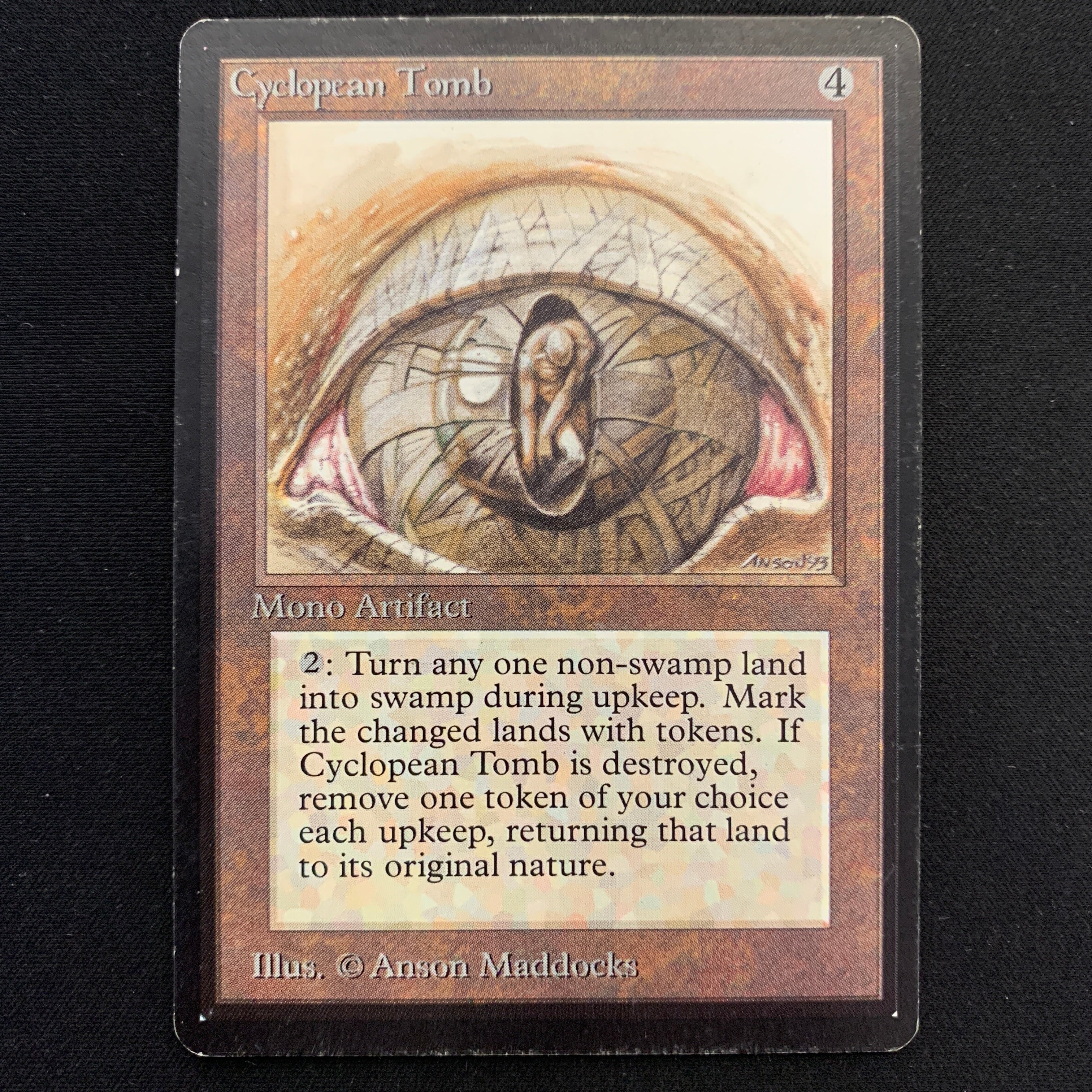 When Cyclopean Tomb is put into a graveyard from the battlefield, at the beginning of each of your upkeeps for the rest of the game, remove all mire counters from a land that a mire counter was put onto with Cyclopean Tomb but that a mire counter has not been removed from with Cyclopean Tomb.