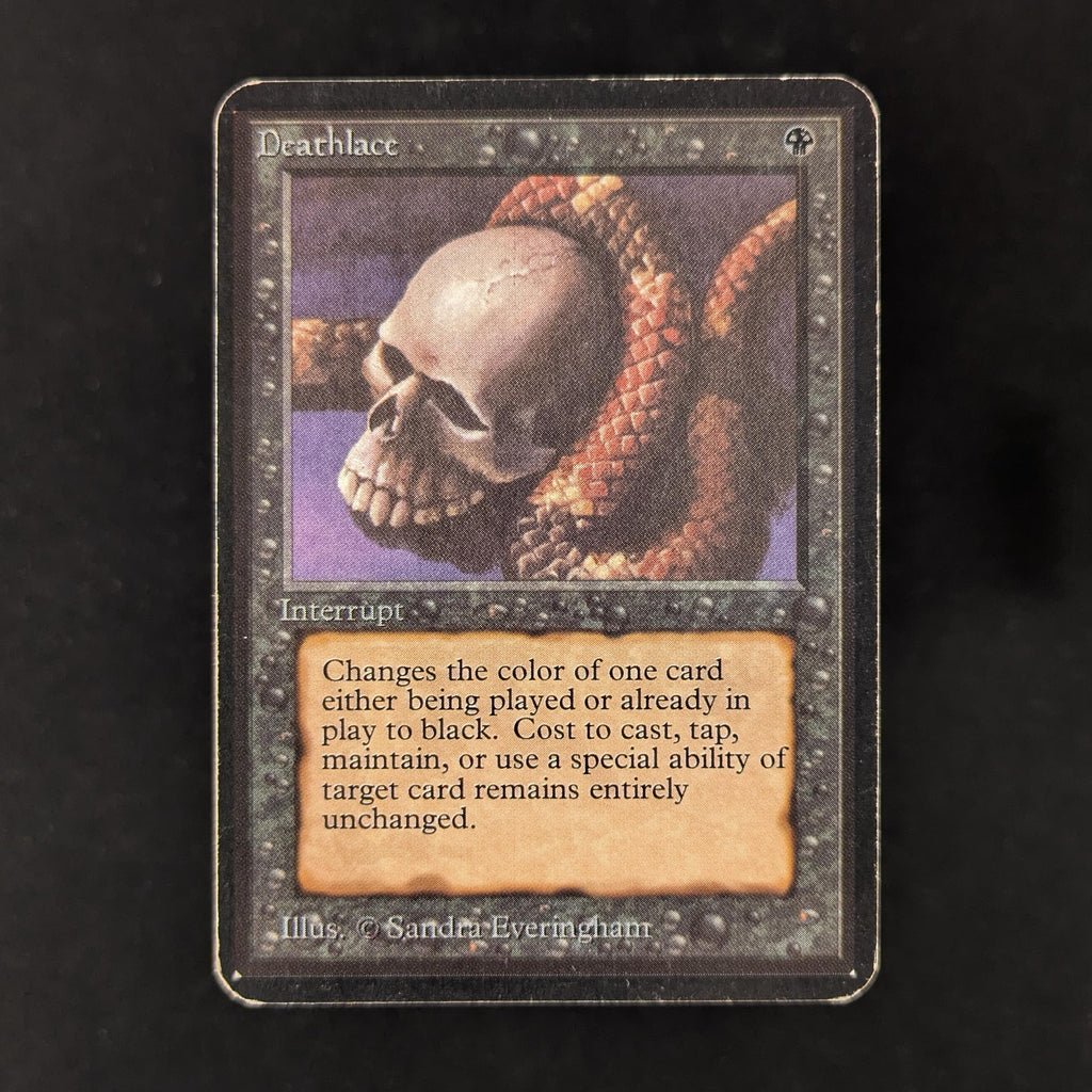 Target spell or permanent becomes black. (Mana symbols on that permanent remain unchanged.)
