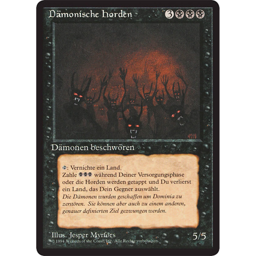 At the beginning of your upkeep, unless you pay , tap Demonic Hordes and sacrifice a land of an opponent's choice.