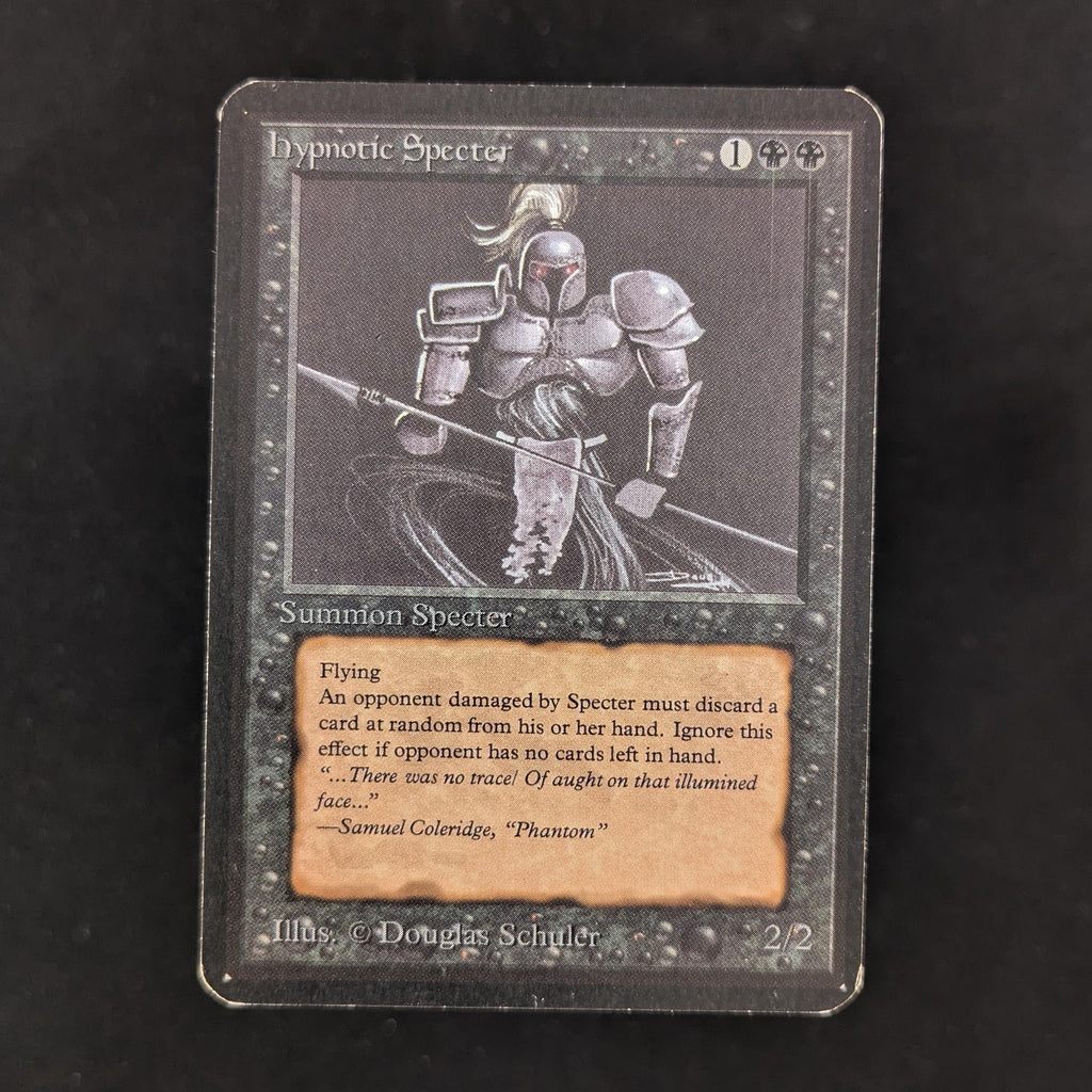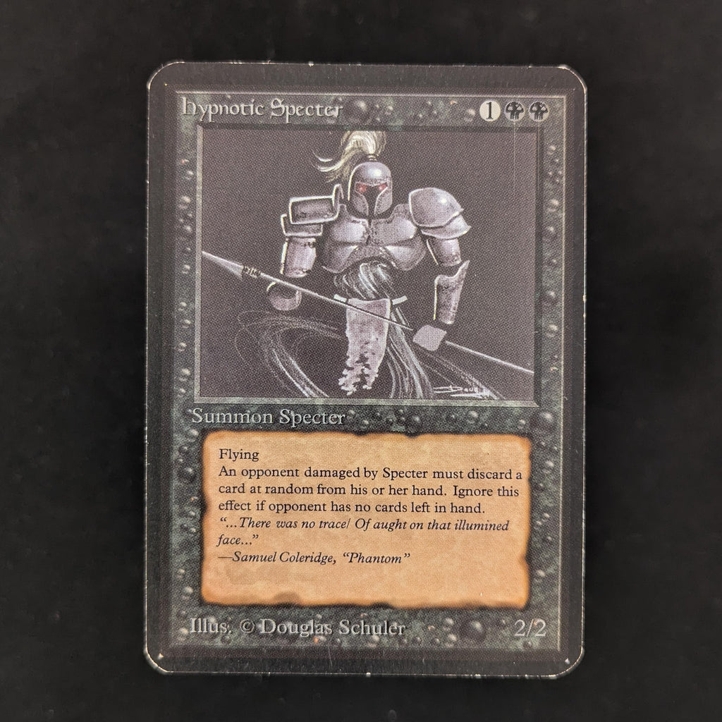 Whenever Hypnotic Specter deals damage to an opponent, that player discards a card at random.