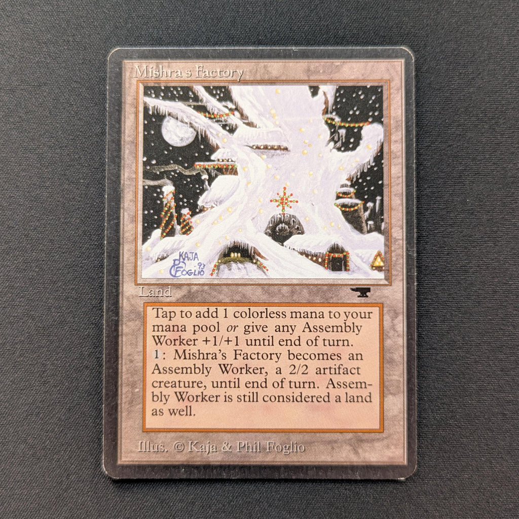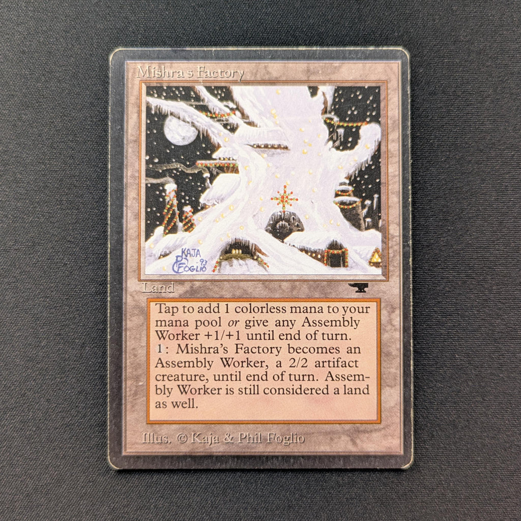 {T}: Add {C}.\n{1}: Mishra's Factory becomes a 2/2 Assembly-Worker artifact creature until end of turn. It's still a land.\n{T}: Target Assembly-Worker creature gets +1/+1 until end of turn.