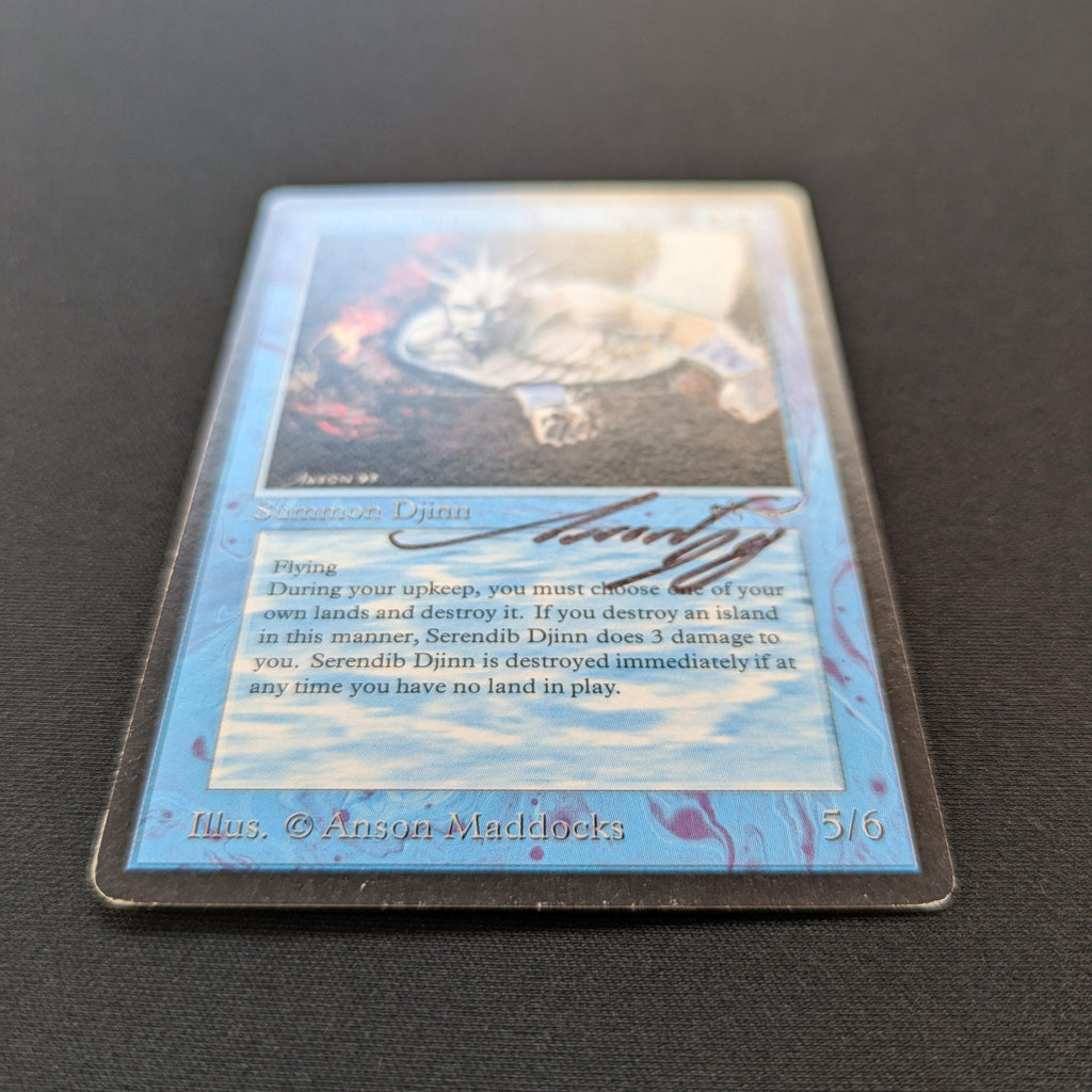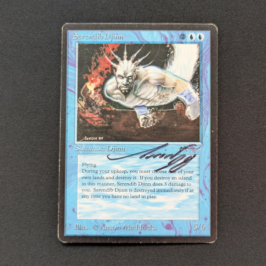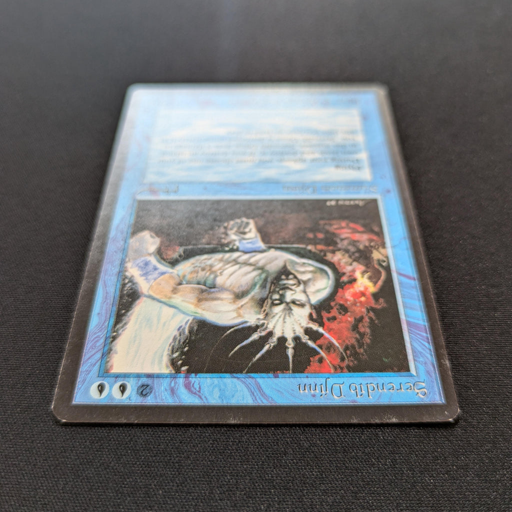 At the beginning of your upkeep, sacrifice a land. If you sacrifice an Island this way, Serendib Djinn deals 3 damage to you.