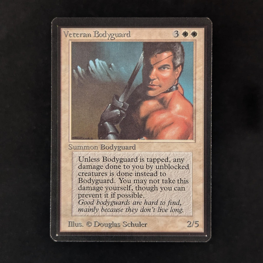 As long as Veteran Bodyguard is untapped, all damage that would be dealt to you by unblocked creatures is dealt to Veteran Bodyguard instead.